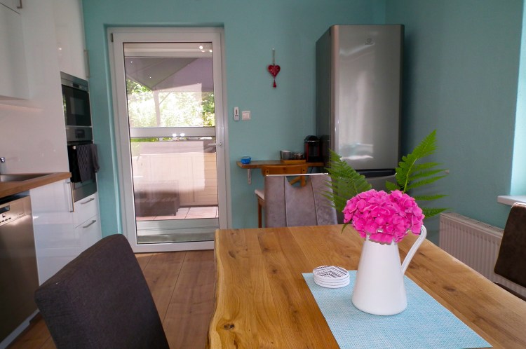 lounge room kitchen dininggreen bedroom door to front patio kingsize bed in bedroombathroom large bathkitchenKitchen appliancesNespresso coffee makerfront patio