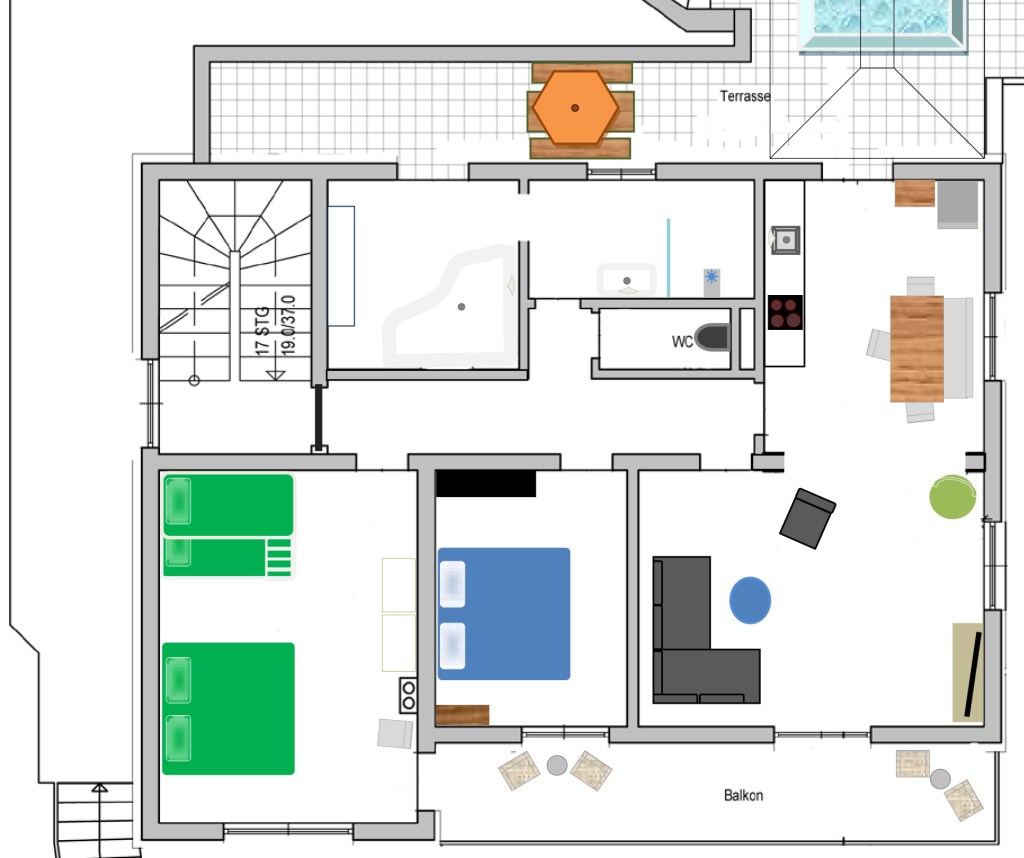 lounge with door to front patiooak kitchen tablegreen bedroom king size bed with double bunk bed bedroom 2bathroom showerkitchen- door to back patioback patioBaker’s Pond Apartment